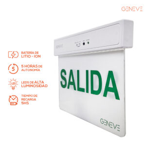 Mantén tus espacios seguros y bien señalizados incluso en cortes de luz. Esta luz de emergencia con cartel indicador de salida funciona de forma autónoma hasta 5 horas, iluminando e indicando la dirección de salida para una evacuación rápida y segura.
