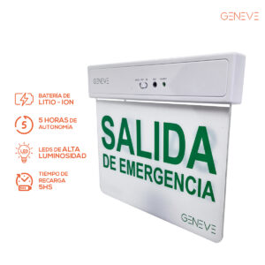 Mantén tus espacios seguros y bien señalizados incluso en cortes de luz. Esta luz de emergencia con cartel indicador de salida funciona de forma autónoma hasta 5 horas, iluminando e indicando la dirección de salida para una evacuación rápida y segura.