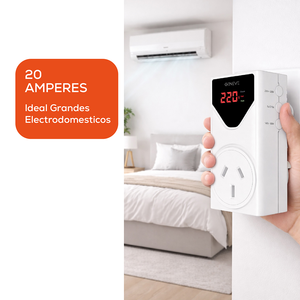 Disponible en versiones de 10 amperes y 20 amperes, para adaptarse a distintas necesidades de consumo eléctrico, es ideal para heladeras, freezers, aires acondicionados, TVs, bombas, motores y otros equipos sensibles a fluctuaciones de energía.