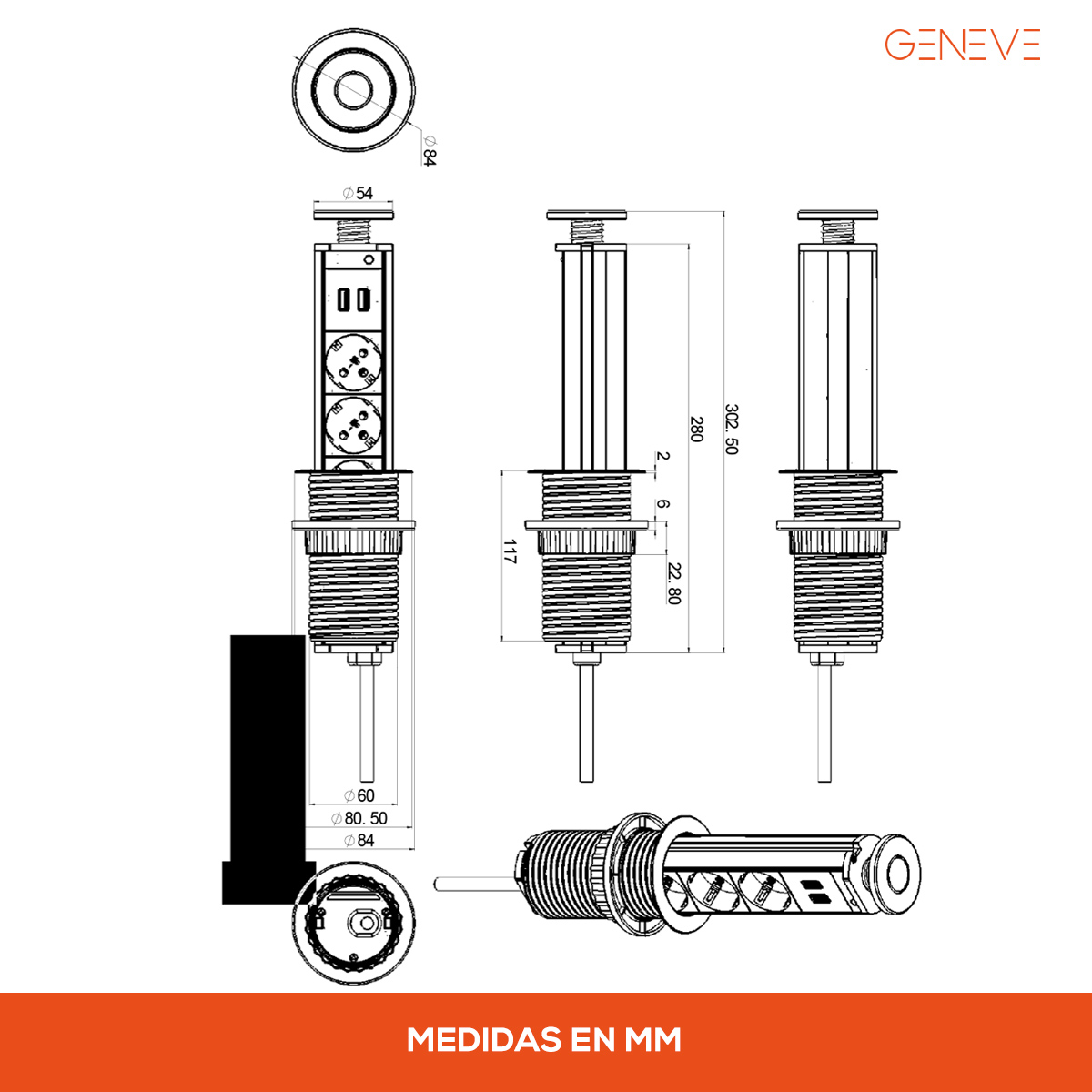 GE-TC3+3-NGTorre de Conectividad Retráctil Elite: La Armonía Perfecta entre Diseño y Poder