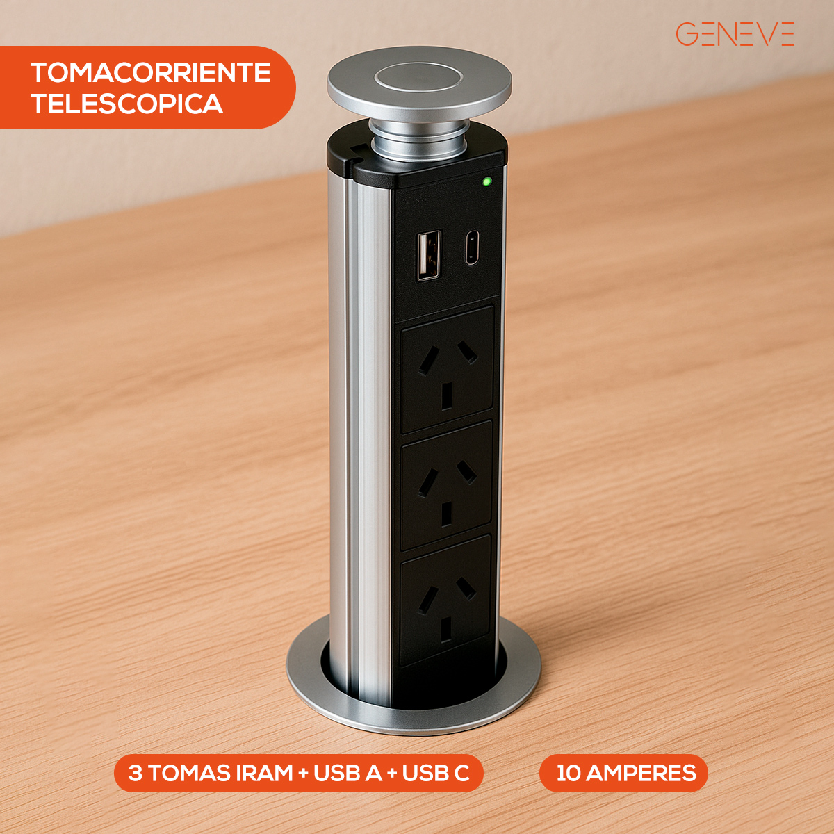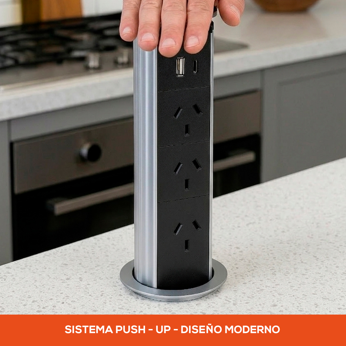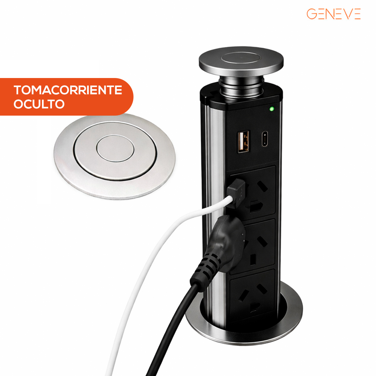 Diseñada para quienes entienden que la verdadera elegancia reside en la funcionalidad que no interrumpe la estética, la Torre de Conectividad Retráctil Elite es la solución definitiva para integrar potencia y minimalismo en sus superficies más exclusivas. Esta pieza de ingeniería, acabada en aluminio anodizado de alta resistencia, permanece oculta de forma casi invisible en su encimera o escritorio, emergiendo mediante un suave mecanismo de presión solo cuando la tecnología lo requiere. Al desplegarse, ofrece una estación de alto rendimiento que combina tres tomas de corriente reforzadas con un centro de carga dual USB-A y USB-C de última generación, permitiendo alimentar simultáneamente electrodomésticos y dispositivos móviles sin comprometer la limpieza visual del espacio. Su sellado superior y su perfil satinado no solo garantizan una durabilidad excepcional frente al uso diario y las salpicaduras, sino que transforman un elemento técnico en un detalle de diseño sofisticado, ideal para liberar sus superficies de cables y permitir que la arquitectura de su hogar sea la verdadera protagonista.