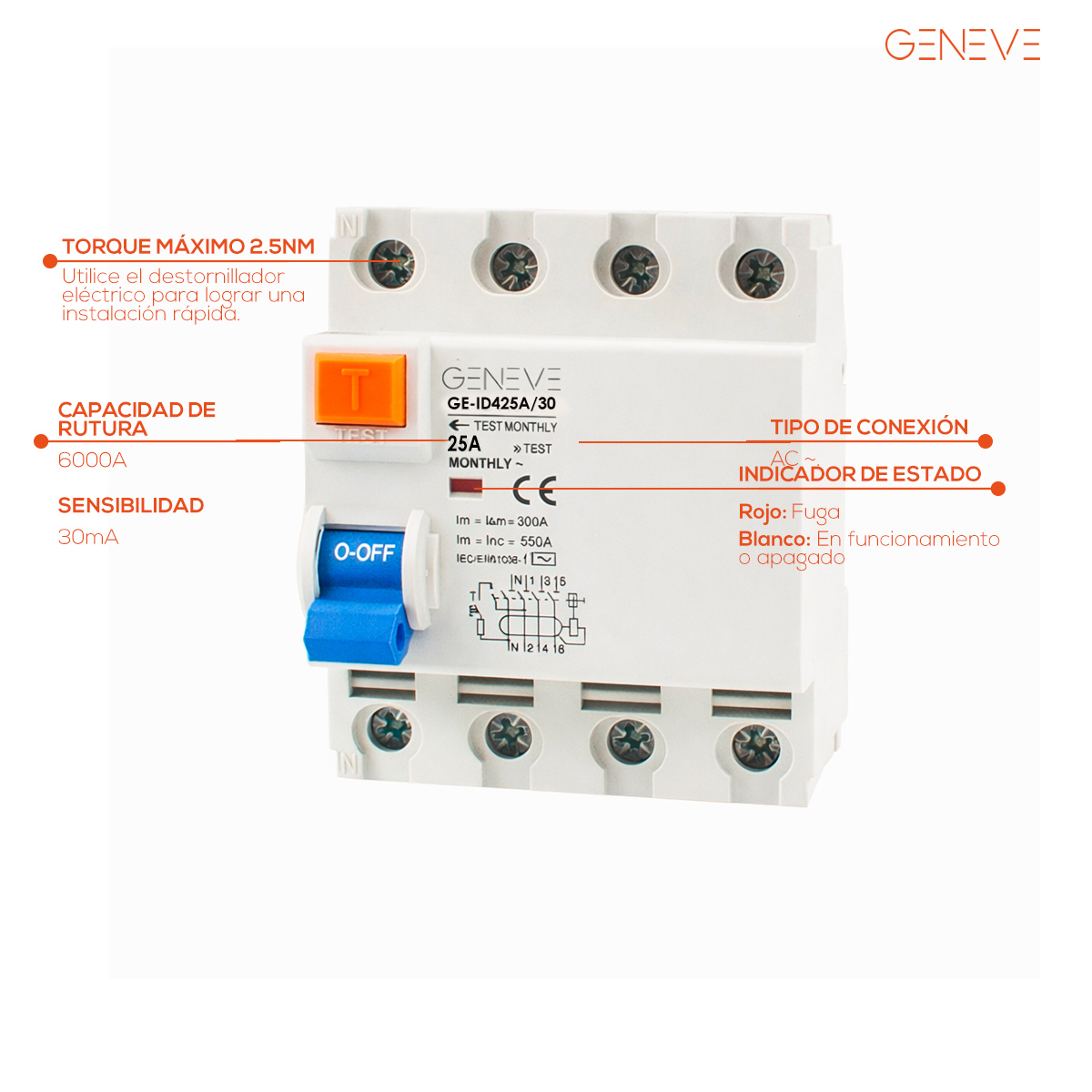 Los disyuntores Geneve están diseñados para ofrecer una protección segura y eficiente en instalaciones eléctricas residenciales, comerciales e industriales. Fabricados con altos estándares de calidad y tecnología avanzada, garantizan una rápida respuesta ante sobrecargas y cortocircuitos, protegiendo tanto los equipos eléctricos como la seguridad de las personas.